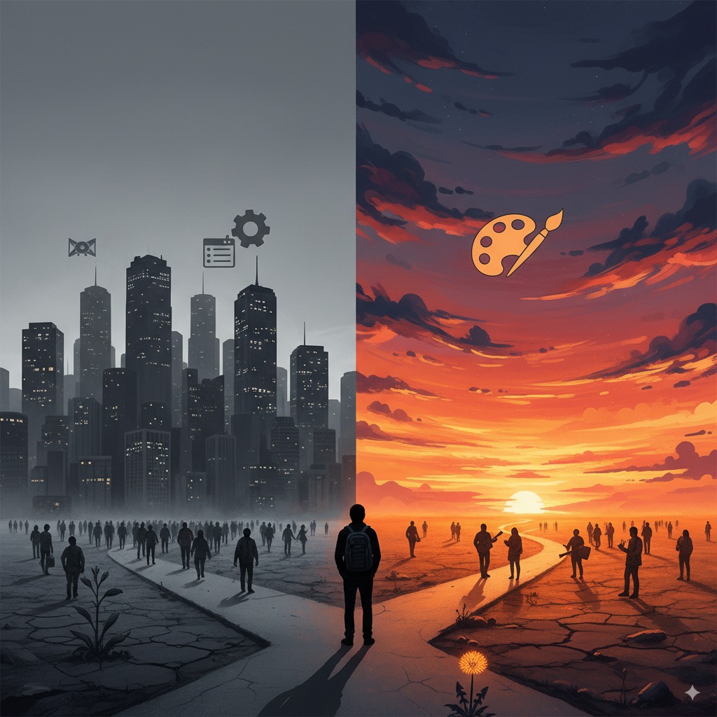 The mirror moment of breaking free from borrowed lives and borrowed metrics.