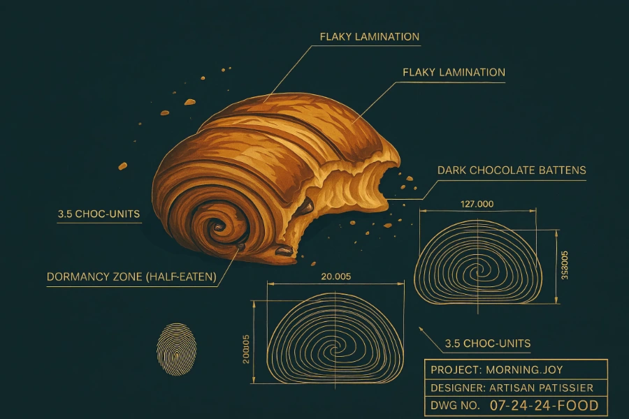A pain au chocolat as metaphor for life design: messy, intentional, and creative.