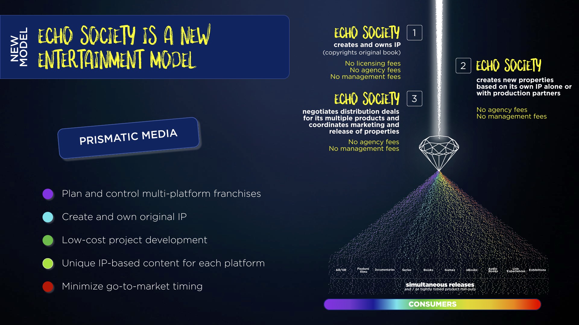A bold, cinematic deck to support Echo Society’s first investor push in content IP and production innovation.