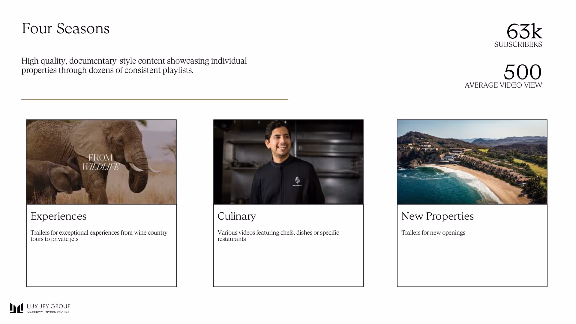 From content chaos to brand storytelling harmony, I helped Marriott’s Luxury Group elevate their YouTube strategy with a data-backed, halo-effect approach across all sub-brands.