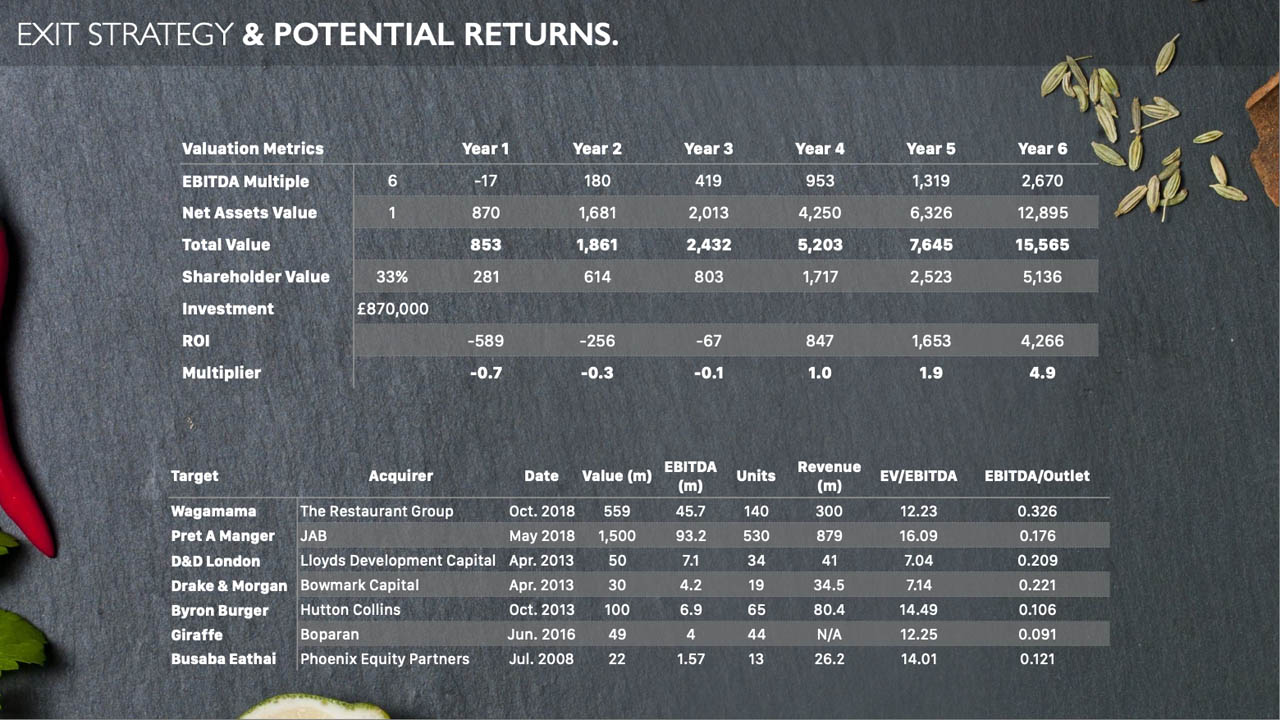 - Outlined scalable growth model (shops, kiosks, delivery, tech stack) and exit roadmap